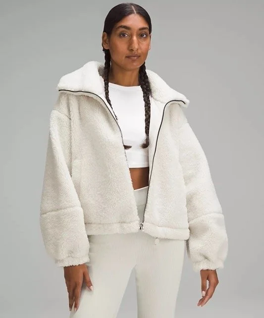 The fleece jacket from lululemon is a staple item for your winter wardrobe! Not only is it very soft, the inside is also lined with a super soft fabric and it’s significantly weighted to keep you warm in winter.