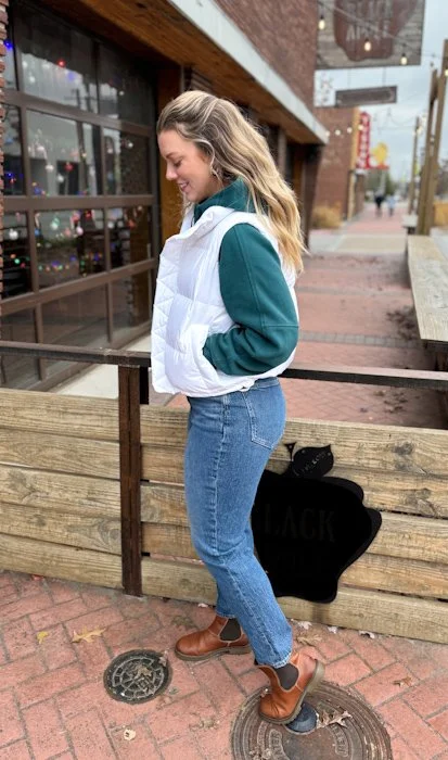 There is nothing better than your favorite pair of jeans and the warm lululemon Scuba Sweater. When it’s extra cold outside, I like to pair it with the Wunder Puff Vest to take the chill off.