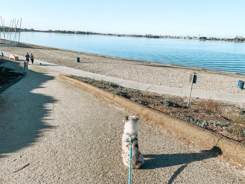 Mission Bay Trail checks in as our easiest dog friendly hike in San Diego. It is really more of a walk than a hike, but our dogs loved strolling along the bay so much that we had to include it on this list.